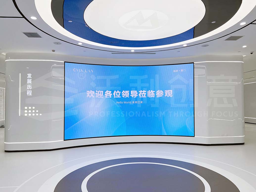 招商银行厦门分行金融科技展厅将金融科技的空间艺术表达与智能硬件、软件系统、数据和多媒体内容进行立体式整合,交互式呈现,为招行打造了“人与数字化相结合”的沉浸式未来展厅。